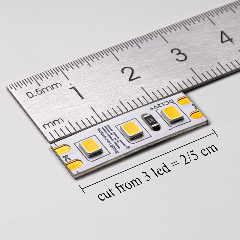 تراکم بالای 120 عدد LED در هر متر از نوع SMD 2835 (یک ردیفه) باعث توزیع یکنواخت نور در طول ریسه میشود. این ساختار همراه با قابلیت برش در هر 3 LED امکان تنظیم دقیق طول و شکل نصب را متناسب با طراحی داخلی فراهم میکند.